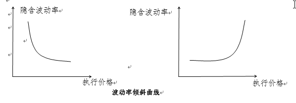 需要特别注意的一点是,在实际中,波动率曲线不一定呈现出两边高中间低的“微笑”形态,也可能出现倾斜的形态,如下图所示。