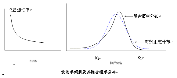 然后,我们来看波动率倾斜的图与其对应的标的资产价格走势的概率分布: