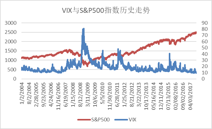 VIX是衡量市场波动率的重要指标。它显示了S&P500指数期权价格30天的隐含波动率,一般用作市场系统性风险的指标。由于该指数可以反映投资者对未来金融产品价格波动的预期,观察期权参与者的“心理”,也被称作“投资者情绪指标”。