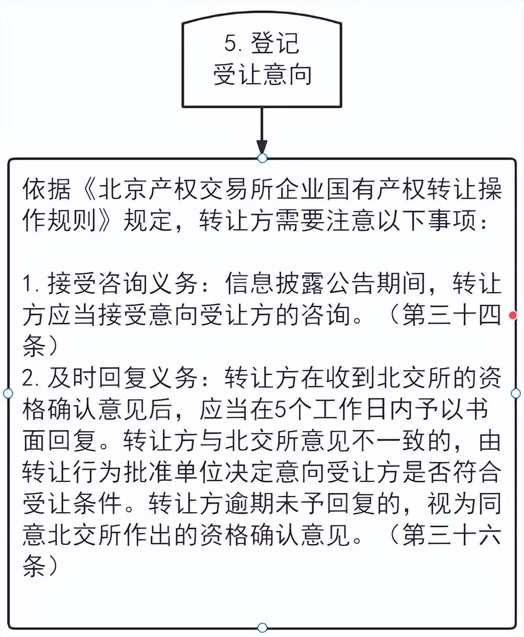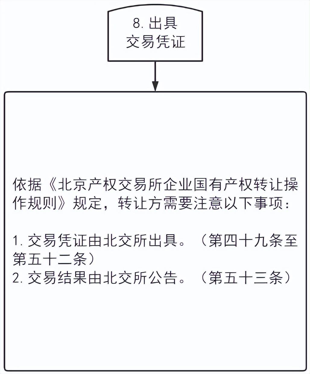 北京产权交易所企业国有产权公开交易流程图(1)——(8)所示
