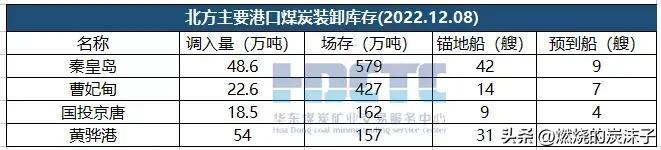 截止12月08日,秦港场存579万吨,调入量48.6万吨。