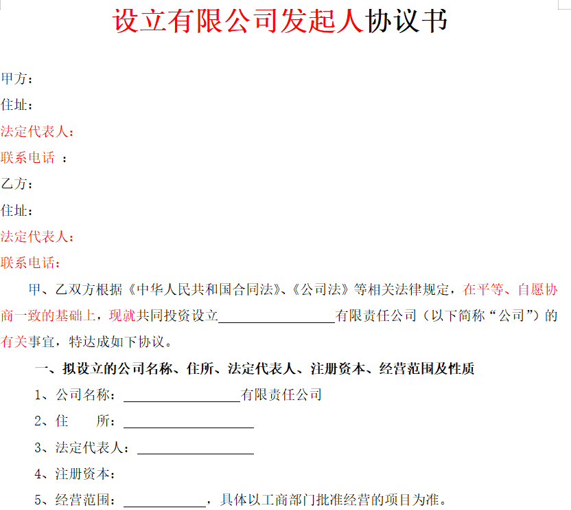 关于共同出资设立有限公司之发起人协议书(模板).doc