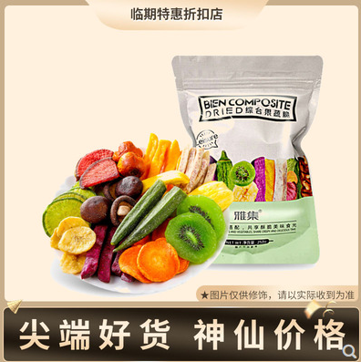非油炸,采用低温脱水工艺,较好地保留了蔬果的营养和原色。共有十二种果蔬搭配,果干包括番薯干、香蕉干等,蔬菜干除香菇、香芋外还包含了三种萝卜及秋葵。