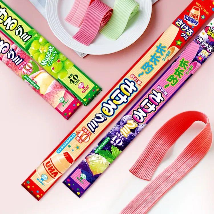果汁味浓郁,有巨峰葡萄、白葡萄、白桃、乳酸菌等口味。造型设计成长条可撕状,吃法花样多,不仅可以用来解馋,还能拿来编造型。