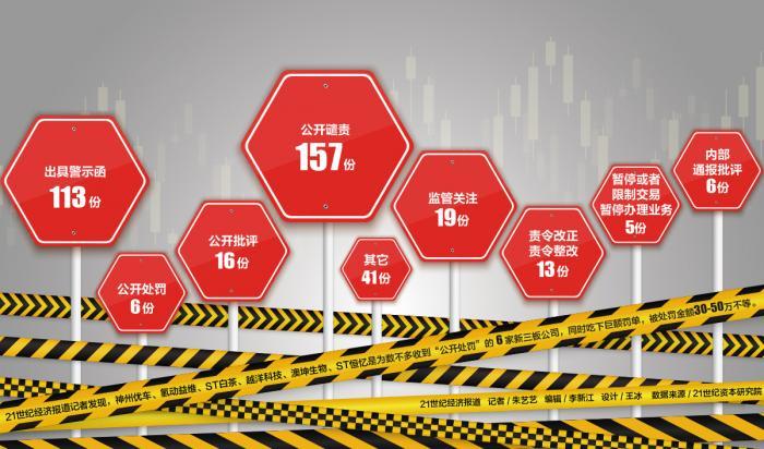 根据21世纪经济资本研究院数据,1月1日以来,证监会、全国中小企业股份转让系统有限责任公司以及各地证监局针对新三板公司开出376份“罚单”。
