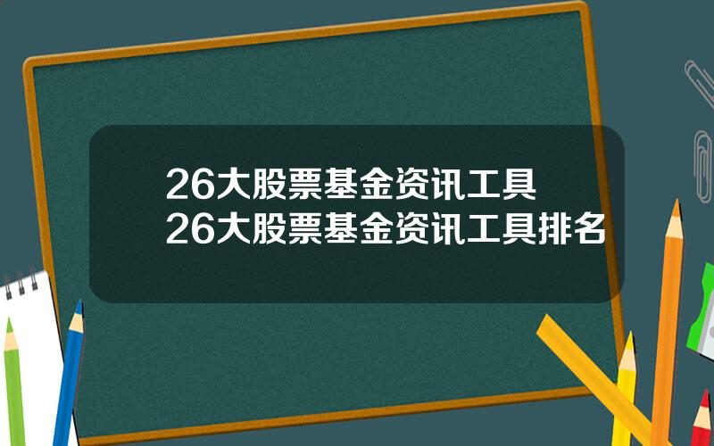 大家好,关于26大股票基金资讯工具很多朋友都还不太明白,不过没关系,因为今天小编就来为大家分享关于26大股票基金资讯工具排名的知识点,相信应该可以解决大家的一些困惑和问题,如果碰巧可以解决您的问题,还望关注下本站哦,希望对各位有所帮助!