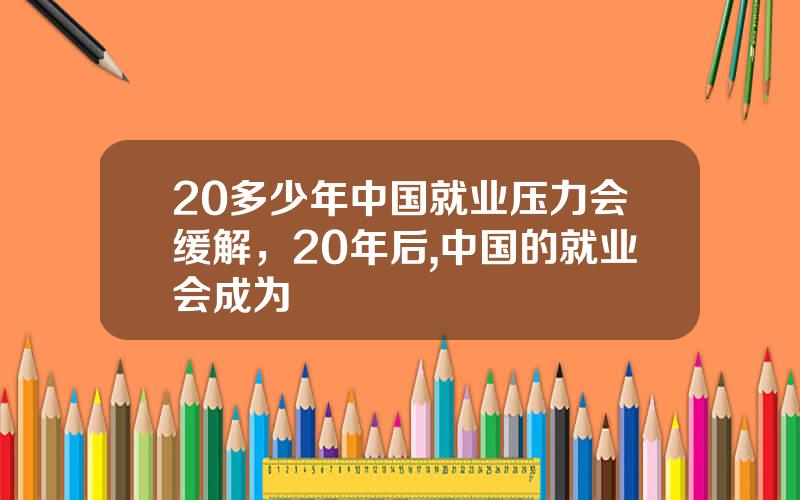 大家好,今天来为大家解答20多少年中国就业压力会缓解这个问题的一些问题点,包括20年后,中国的就业会成为也一样很多人还不知道,因此呢,今天就来为大家分析分析,现在让我们一起来看看吧!如果解决了您的问题,还望您关注下本站哦,谢谢~