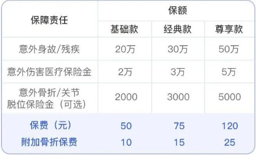 保障额度:基础款2万,经典款3万,尊享款5万。