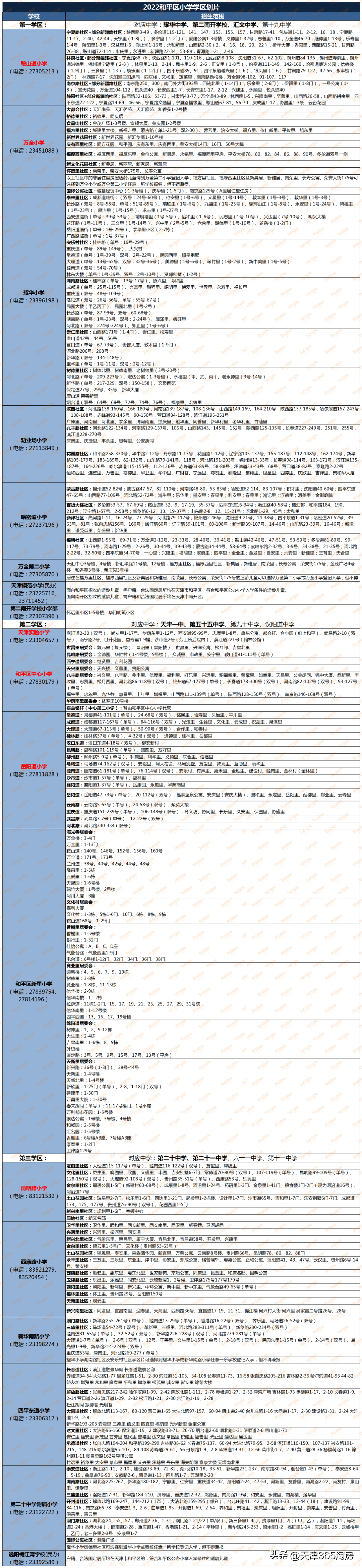 下面附上2022年天津小升初学区划片以及市区120多所小学划片一览表,以供参考。