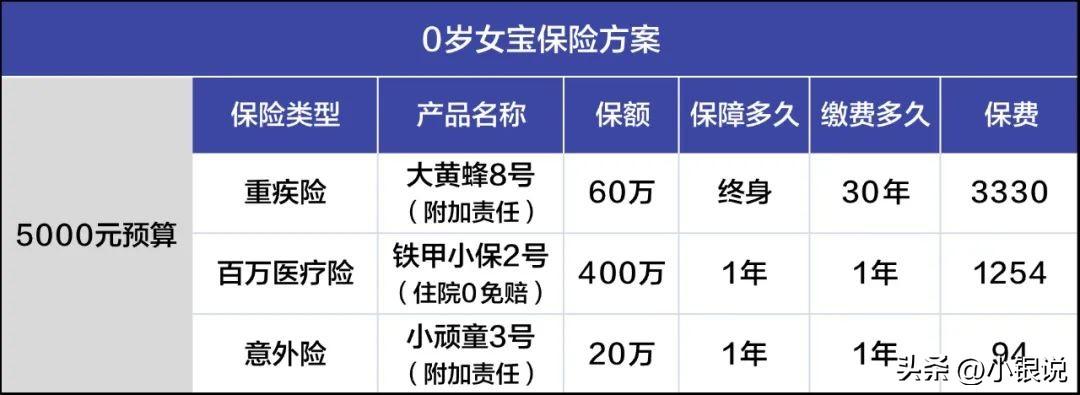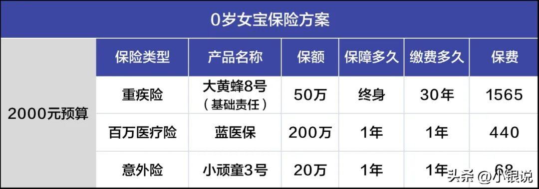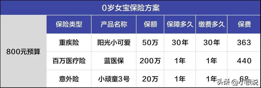 小银这里提供三套0岁宝宝保险方案,按预算区分: