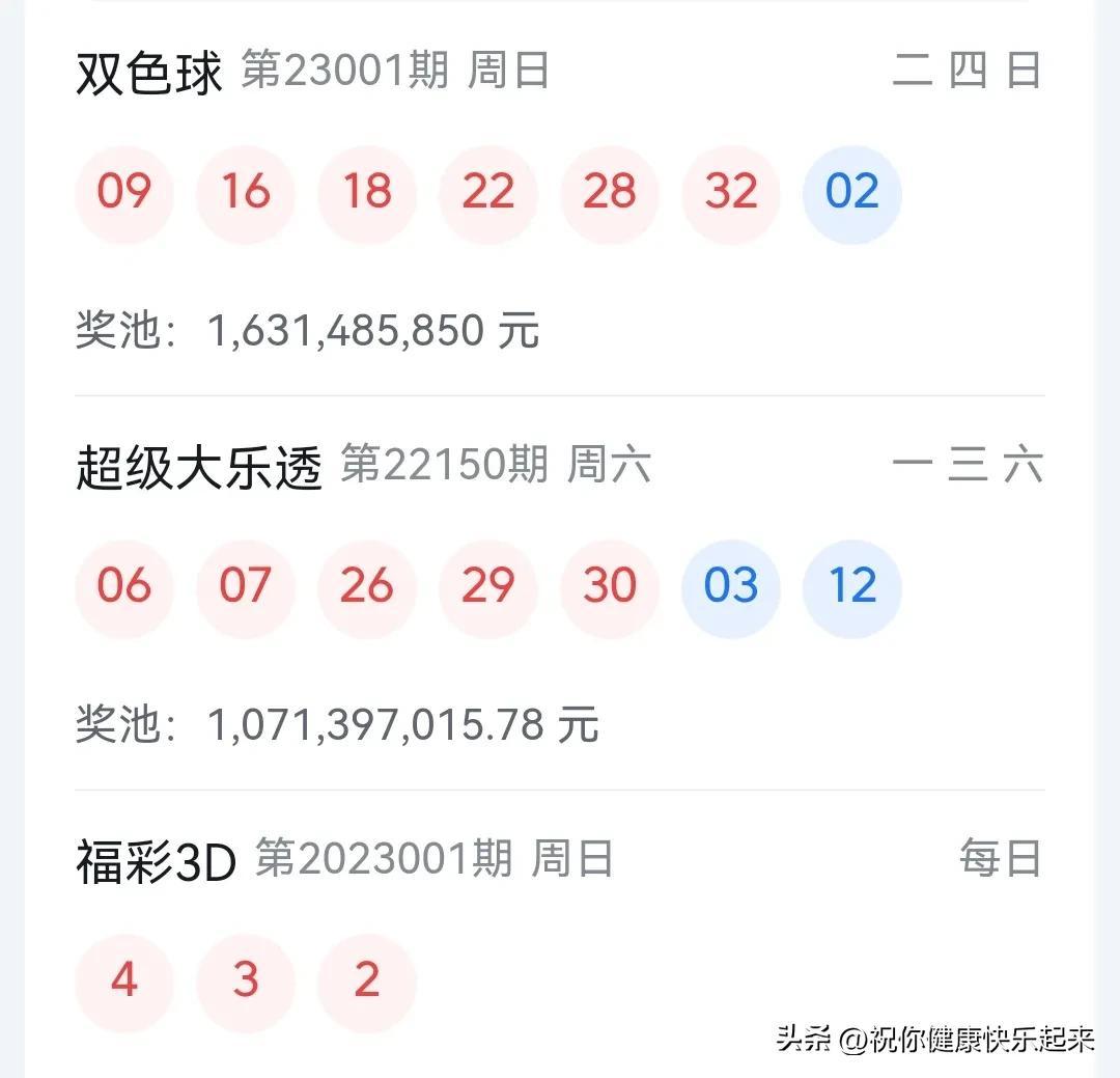 2023年001期福彩双色球开奖了。