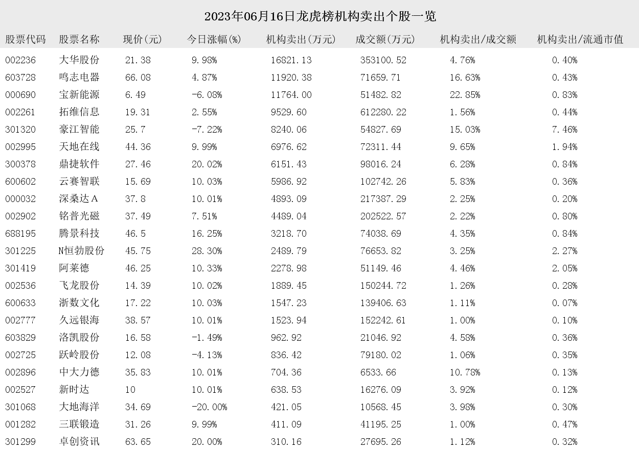 【推荐】2023年06月16日龙虎榜机构买入和卖出的个股一览股票资讯哪里有卖出的呀